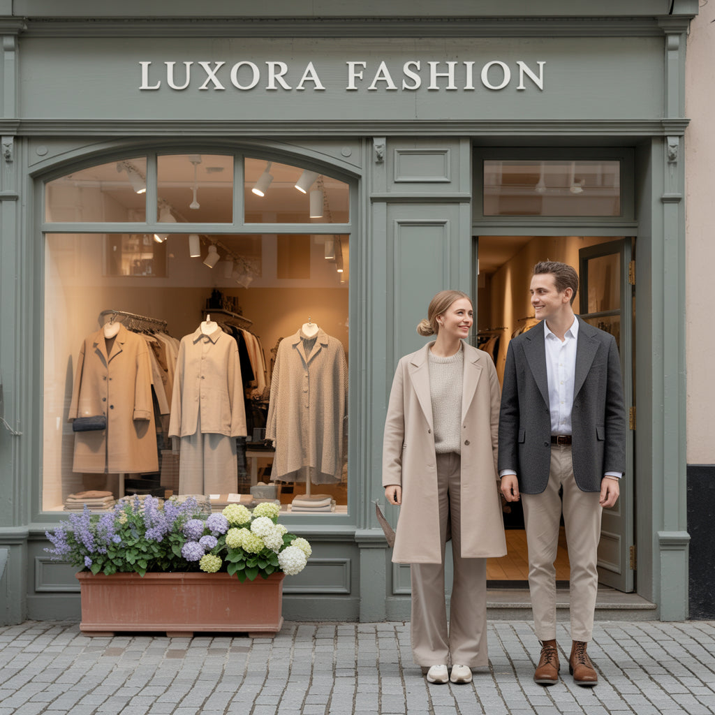 Välkommen till vår butik! Vi är Joseph och Maeve, de stolta ägarna av en unik modebutik belägen i hjärtat av Stockholm. Efter år av planering och drömmar har vi äntligen förverkligat vår vision – inte bara genom vår nätbutik, utan också med en fysisk plats där vi kan skapa en direkt kontakt med vårt community.